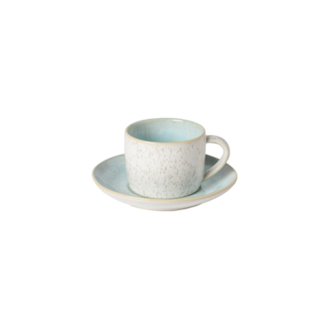 Tea Cup And Saucer, 6-1/8"W x 2-3/4"H, 7-3/4 fl oz, oven safe, microwave safe, dishwasher safe, freezer safe, fine stoneware, Eivissa, sea blue, (minimum = case quantity) (6 per case) (SETS UNAVAILABLE - Must order individual components: LNC122-SEA - LNP152-SEA)