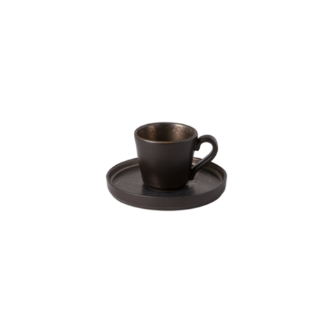 Coffee Cup And Saucer, 4-7/8"W x 2-1/2"H, 2-7/8 fl oz, microwave safe, dishwasher safe, freezer safe, fine stoneware, Lagoa, metal, (minimum = case quantity) (6 per case) (SETS UNAVAILABLE - Must order individual components: LOC092-MTL - LOP131-MTL)
