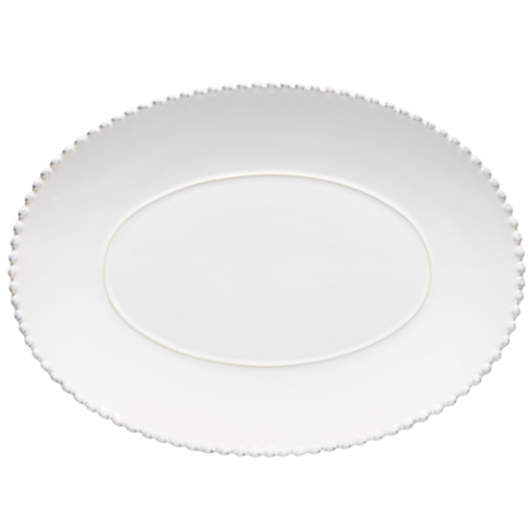 Oval platter 41, L 16 1/8" x W 11 3/4" x H 1 3/4", fine stoneware, oven safe, microwave safe, freezer safe, dishwasher safe, Pearl, white, (minimum = case quantity), (warranty not applicable)