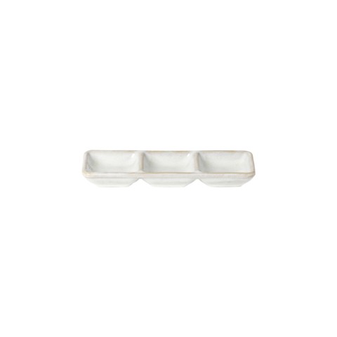 3-Section rectangular tray 18, 6-7/8" x 2-5/8" x H7/8", 1 3/8 fl oz, oven safe, microwave safe, dishwasher safe, freezer safe, fine stoneware, Roda, Branca, (minimum = case quantity) (2 per case)