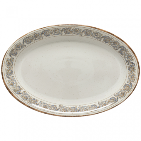 Platter 46, 12 1/8"W x 1 7/8"D x 1 7/8"H, oval, oven safe, microwave safe, dishwasher safe, freezer safe, fine stoneware, sardegna, white-blue, (minimum = case quantity) (1 per case)