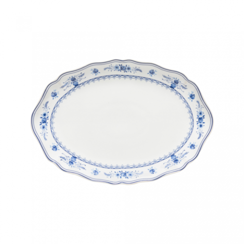 Oval platter 32, L 12 3/4" x W 8 3/4" x H 1 1/4", fine stoneware, oven safe, microwave safe, freezer safe, dishwasher safe, Vila, white-blue, (minimum = case quantity), (6 per case)