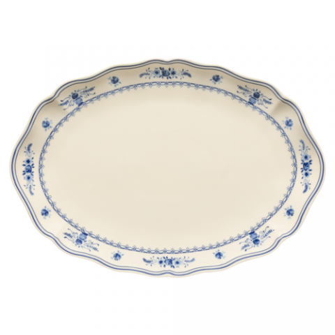 Oval platter 40, L 16" x W 11 1/8" x H 1 1/2", fine stoneware, oven safe, microwave safe, freezer safe, dishwasher safe, Vila, beige-blue, (minimum = case quantity), (1 per case)