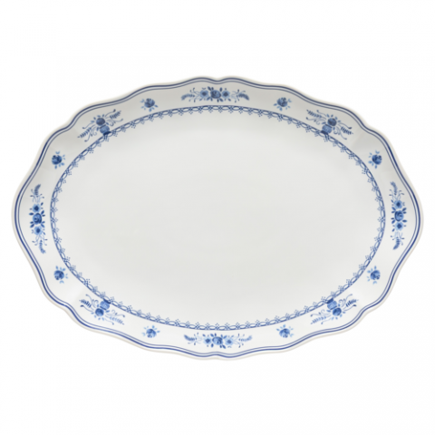Oval platter 40, L 16" x W 11 1/8" x H 1 1/2", fine stoneware, oven safe, microwave safe, freezer safe, dishwasher safe, Vila, white-blue, (minimum = case quantity), (1 per case)