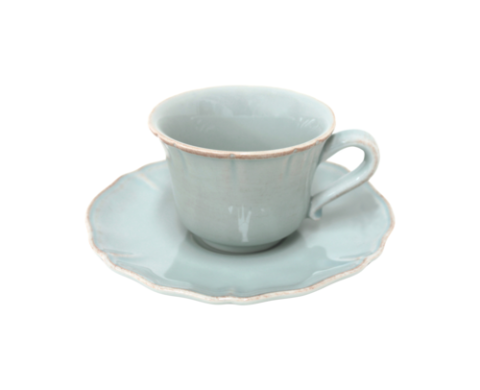 Tea Cup And Saucer, 6-5/8"W x 2-7/8"H, 7-1/2 fl oz, oven safe, microwave safe, dishwasher safe, freezer safe, fine stoneware, Alentejo, turquoise, (minimum = case quantity) (6 per case) (SETS UNAVAILABLE - Must order individual components: SC121-TRQ - TP171-TRQ)