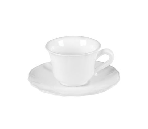 Coffee Cup And Saucer, 5-3/4"W x 2-1/2"H, 3 fl oz, microwave safe, dishwasher safe, freezer safe, fine stoneware, Alentejo, white, (minimum = case quantity) (6 per case) (SETS UNAVAILABLE - Must order individual components: SC101-WHT - TP141-WHT)