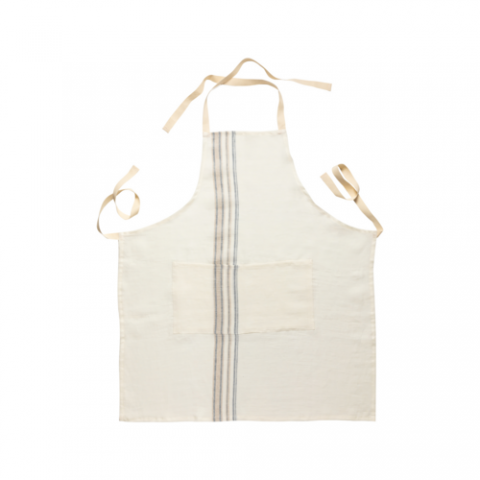 Kitchen apron 100% LI, linens, do not dry clean, Carmela, blue-cream, (minimum = case quantity), (warranty not applicable)