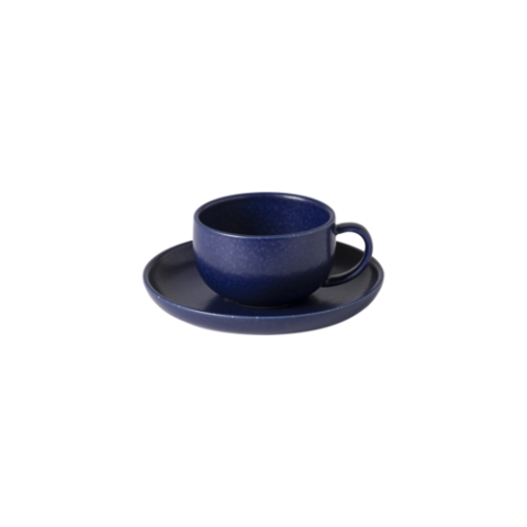 Tea Cup And Saucer, 6-1/4"W x 7/8"H, 7-1/4 fl oz, oven safe, microwave safe, dishwasher safe, freezer safe, fine stoneware, Pacifica, blueberry, (minimum = case quantity) (6 per case) (SETS UNAVAILABLE - Must order individual components: XOC122-BBY - SOP162-BBY)