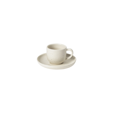 Coffee Cup And Saucer, 4-5/8"W x 7/8"H, 2-3/8 fl oz, oven safe, microwave safe, dishwasher safe, freezer safe, fine stoneware, Pacifica, vanilla, (minimum = case quantity) (6 per case) (SETS UNAVAILABLE - Must order individual components: XOC081-VAN - SOP121-VAN)