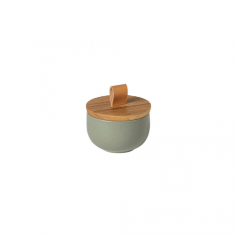 Salt cellar with oak wood lid 21 cl, L 3 5/8" x W 3 5/8" x H 2 1/4", 5 1/8 fl oz, fine stoneware, oven safe, microwave safe, freezer safe, dishwasher safe, Pacifica, artichoke, (minimum = case quantity), (warranty not applicable)