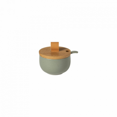Sugar bowl 9 with oak wood lid and spoon, D3-5/8" x H2-1/4", 5-1/8 fl oz, oven safe, microwave safe, dishwasher safe, freezer safe, fine stoneware, Pacifica, Artichoke, (minimum = case quantity) (1 per case)