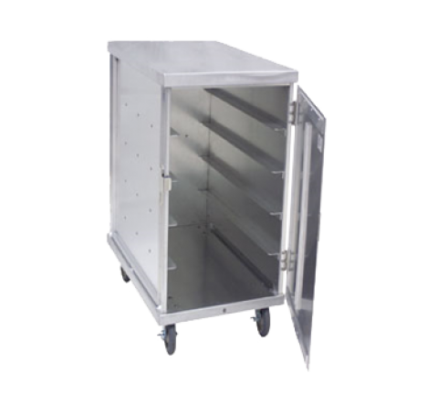 Tray Delivery Cabinet, mobile, enclosed, single compartment, non-insulated, hold (10) 14" x 18" pans on 5-1/2" centers, reinforced door swings 270°, gravity type latch, card clip included, (4) 5" swivel casters (2) braked, Hi-Tensile aluminum exterior & interior, NSF