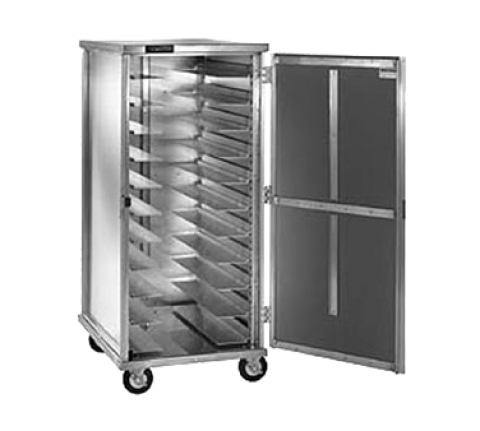 Cabinet, mobile, enclosed, single compartment, non-insulated, hold (11) sets universal angles pan slides on adjustable 1-1/2" centers, reinforced door swings 270°, gravity type latch, card clip included, (4) 5" swivel casters (2) braked, Hi-Tensile aluminum exterior & interior, NSF