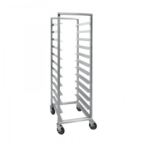 Utility Rack, mobile, angle ledge, full height, open sides, riveted pan slides with extruded angles, 5-1/8" centers, (24) 14" x 18" tray or (12) 18" x 26" pan capacity, end loading, fully welded Hi-Tensile aluminum frame construction, (4) 5" swivel casters (2) braked, NSF