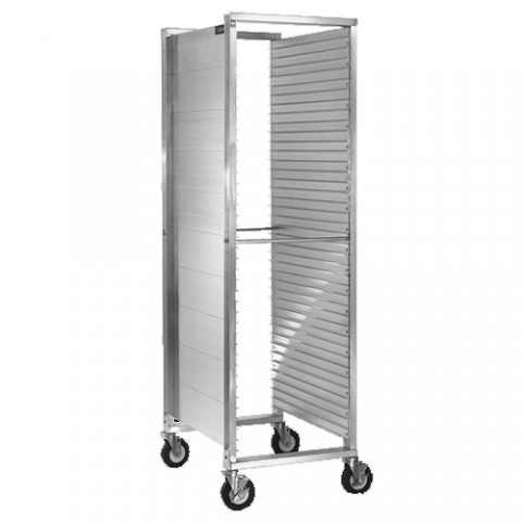 Correctional Utility Rack, mobile, full height, reinforced closed sides, with slides for 18" x 26" pans, slides on 1-1/2" centers, welded extruded aluminum frame, end loading
