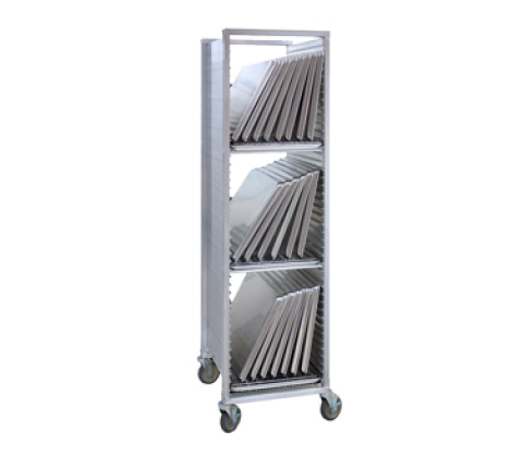 Sheet Pan Drying Rack, mobile, 3 sections, (36) 18" x 26" tray capacity, 1-1/2" centers, aluminum construction, (4) heavy duty 5" swivel casters (2) braked NSF