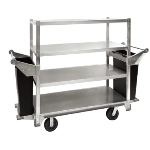 Queen Mary Cart, all riveted framework of structural aluminum extrusions, 4 shelves on 15-3/4" centers, side mounted push handles, bumpers, (4) 8" poly swivel casters (2) braked, NSF