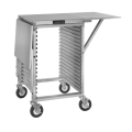 Mobile Work Stand, self contained work center/station for small appliances, solid top model features side drop shelves with snap-lock system, holds (18) 18" x 26" pans, 1-1/2" centers, aluminum frame, NSF