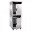Roast-N-Hold™ Oven, mobile, stacked, half-size, convection, top mounted power unit, deluxe LED oven controls (18 programmable menu options, food probe cooking, includes 6" probe), channel pan slides, 3" on center, capacity (9) 18" x 26" full size bun pans per compartment, (3) chrome plated wire grids per compartment, field reversible dutch door, magnetic latches, stainless steel interior & exterior, (4) heavy duty 5" swivel casters (2 with brakes), 4700W, 208v/60Hz/3-ph, cCSAus, CSA