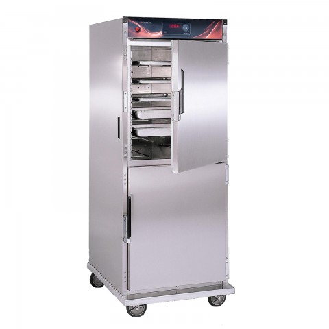 Cabinet, Mobile Heated, insulated, top-mount heater assembly, recessed push/pull handles, magnetic latch, (12) sets chrome plated wire universal angle slides for 12" x 20" thru 18" x 26" pans on 4-1/2" centers, adjustable 1-1/2" centers, reversible dutch doors, (4) heavy duty 5" swivel casters (2) braked, anti-microbial latches, stainless steel construction, NSF, cCSAus, ENERGY STAR®