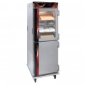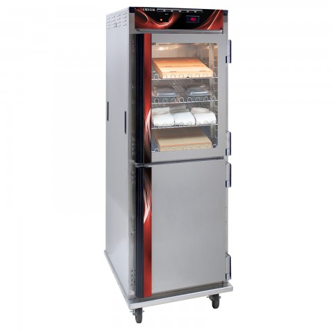 Cabinet, Mobile Heated, pass-thru, insulated, top-mount heater assembly, pan slides hold (12) 18" x 26" pans on 3" centers, stainless steel construction, dutch doors on front with extruded handle, top door with tempered glass window, full length door on rear with magnetic pull latch, tempered glass viewing window, (4) 5" swivel casters (2) braked, cCSAus, CSA-Sanitation