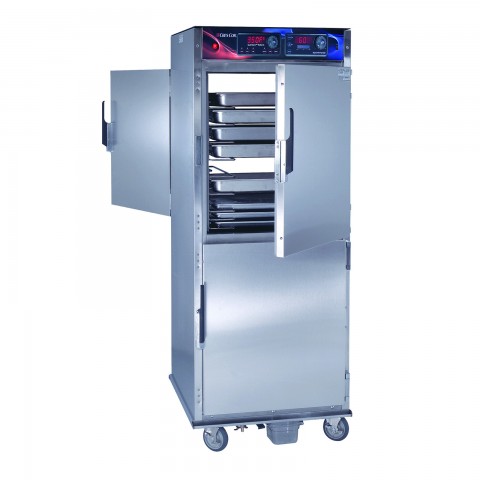 Quiktherm™ Rethermalization/Convection/Hold Oven, AquaTemp™, Pass-Thru, full-size, single cavity, (18) sets of universal angles adjustable on 1-1/2" center, fully insulated, solid state electric controls, convection oven, standard controls, temperature & humidity control, LED digital display, field reversible dutch doors, anti-microbial latches, integral drip trough, (4) heavy duty 5" swivel casters (2) braked, stainless steel construction, cCSAus, CSA-Sanitation
