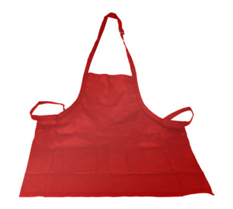 Bib Apron, 25-1/2" W x 29"L, 2-pocket, poly/cotton twill blend, individually packed, red