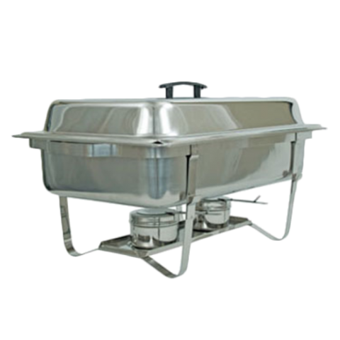 Economy Chafer, full size, includes: foldable stand, 4" dripless water pan, 2-1/2" full dome cover, 2-1/2" food pan and (2) stainless fuel holders, stainless steel