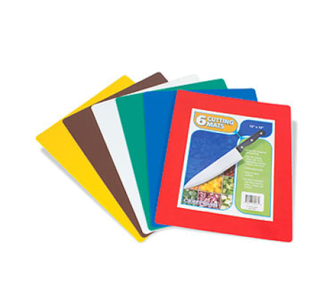 Cutting Board, 12" x 15", flexible, mixed colors, includes (1) of each color: blue, green, yellow, red, brown & white, dishwasher safe, polypropylene (6 each per pack)