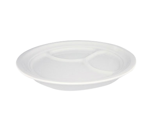 Dish, 9-3/4" dia., round, 3-compartment, fully vitrified, ceramic, pearl white, Quattro (sold only in full case quantity)