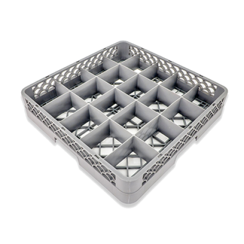 Dishwasher Rack Base, 20 compartment, includes full-height dividers, handgrips, chemical resistant polymers, gray textured surface
