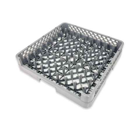 Dishwasher Plate & Tray Rack, peg, open-end, chemical resistant polymers, handgrips, gray