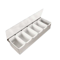 Condiment Dispenser, 6 compartment with inserts, 17-3/4" x 6" x 3-1/2", stainless steel frame and hinge, high impact Plexiglas, clear