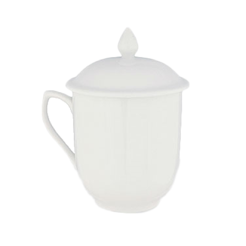 Mug, 9 oz., 3" dia. x 3-1/2"H, with lid, fully vitrified, ceramic, pearl white, Semplice (sold only in full case quantity)