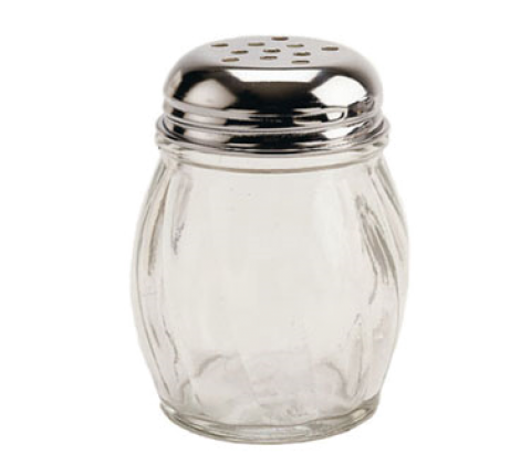 Cheese Shaker, 6 oz., with out handle, swirled glass, stainless steel perforated top, glass