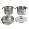Pasta & Steamer Pot, 8 qt. capacity, .5mm satin interior, mirror polish exterior, aluminum capsule bottom 1.5mm, stainless steel hollow handle, straight shape, step & roll edge, includes: pot, pasta insert, glass lid with round knob, and steamer basket, 430 18/0 stainless steel