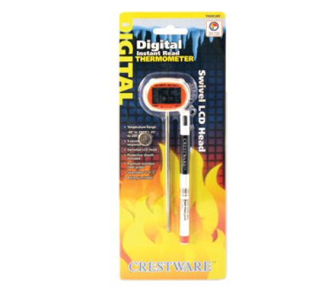 Thermometer, digital, temperature range: -49° F to 392° F, swivel LCD head, selectable F/C reading, protective sheath, 18/0 stainless steel probe, battery included