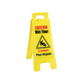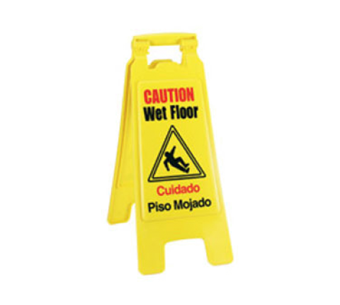 Floor Sign, "CAUTION Wet Floor", hinged, yellow, English/Spanish