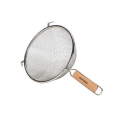 Strainer, 8", fine double mesh, double coated tin, wood handle