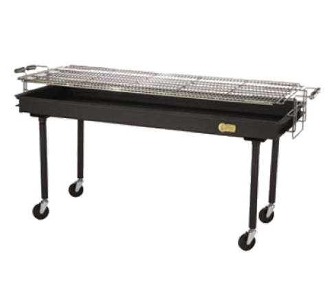 Outdoor Charbroiler, Charcoal, 72"L x 24"D, 60" x 24" height adjustable grill area, high heat enamel finish, 14 gauge cold rolled steel construction, removable heavy duty grill, removable legs with 5" swivel casters