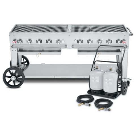 Club Series Mobile Cart Grill with Tank Cart, LP gas, 70"x21" grill area, 10 burners, 304 stainless steel construction, stainless steel grill, radiants, lighter tube (pilot), water pan, undershelf, legs with (2) 14" wheels & (2) total lock casters, 15,000 BTU per burner NSF, SA, ETL