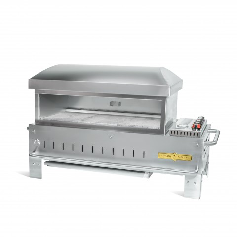 Table Top Series Outdoor Pizza Oven, LP gas, 36", 35-1/2" x 16" volcano stone cooking surface, (3) 10" pizza capacity, (3) burners, piezo ignition, requires (2) vertically mounted 20 lb. propane tanks, 304 stainless steel construction, L-shaped legs, 85,0