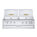 Infinite Series 48" Built-In Outdoor Charbroiler Grill, (6) 14,750 BTUH stainless steel burners, Battery multi-spark ignition system, stainless steel construction, Includes bun-rack, heavy-duty custom fitted cover and a regulator, Light package includes heat Indicating LED bezels and halogen dome lights, lighting package is custom to the grill (IBI48) and is not a retrofit item, dual dome