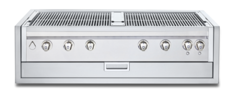 Infinite Series 48" Built-In Outdoor Charbroiler Grill, (6) 14,750 BTUH stainless steel burners, Battery multi-spark ignition system, stainless steel construction, Includes bun-rack, heavy-duty custom fitted cover and a regulator, Light package includes heat Indicating LED bezels and halogen dome lights, lighting package is custom to the grill (IBI48) and is not a retrofit item, dual dome