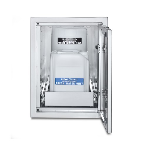 Infinite Series Large Built-In Cabinet with Water Bin Storage, includes water pump, must be installed beside a Crown Verity Sink & Water Heater (IBISC-SK-WH); eliminates the need to run water lines to outdoor kitchen.