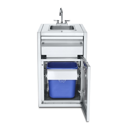 Small Built-In Cabinet with Sink & Garbage Holder, includes paper towel holder, storage cabinet, double garbage bin holder
