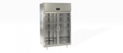 DSL Refrigerator, Reach-In, two-section, 44.57 cubic feet capacity, top-mounted self-contained refrigeration system, (2) full-height hinged glass doors (locking), (6) adjustable wire shelves, 4.3" easyTouch® screen temperature display/control with remote monitoring, LED interior lighting, pilaster with shelf clips, stainless steel exterior front, sides & interior, (4) 6" adjustable stainless steel legs, R290 Hydrocarbon refrigerant, 1/3 HP, 115v/60/1-ph, 6.5 amps, NEMA 5-15P, UL, UL Sanitation