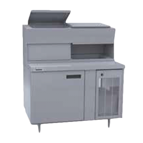 Refrigerated Pizza Table, single-section, 48" W, 12 pan capacity, (1) 27" door, dual flush mount LiquiTec® raised rails, 16 gauge stainless steel top with refrigerated pan rail, unfinished ends & back, 6" legs, side-mounted R290 refrigeration system, 1/5 & 1/3 hp, cUL, UL, NSF (contact factory for price)