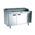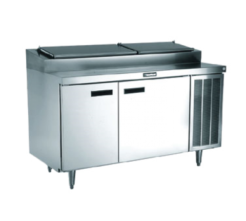 Refrigerated Pizza/Sandwich Prep Table, two-section, (2) 27" doors, stainless steel top with reduced height raised pan rail with 2" pan recess (pans by others), ABS interior sides, stainless steel floor, unfinished ends & back, side-mounted self-contained refrigeration, 6.13" adjustable stainless steel legs, R290 Hydrocarbon refrigerant, cUL, UL, NSF, 1/4 hp (contact factory for price)