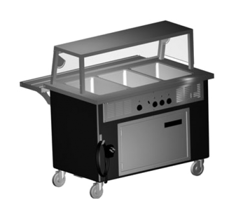 Shelleyglas® Hot Food Serving Counter, Electric, 4-pan size, 14 gauge stainless steel top, fiberglass with heated understorage unit, 5" swivel casters, cUL, UL, NSF (contact factory for price)
